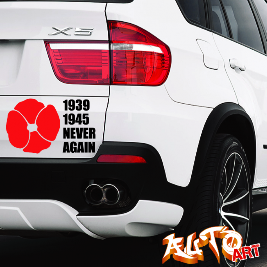 Наклейка «1939 - 1945 Never Again» — пам’ятна вінілова наклейка, що нагадує про події Другої світової війни та важливість миру.
