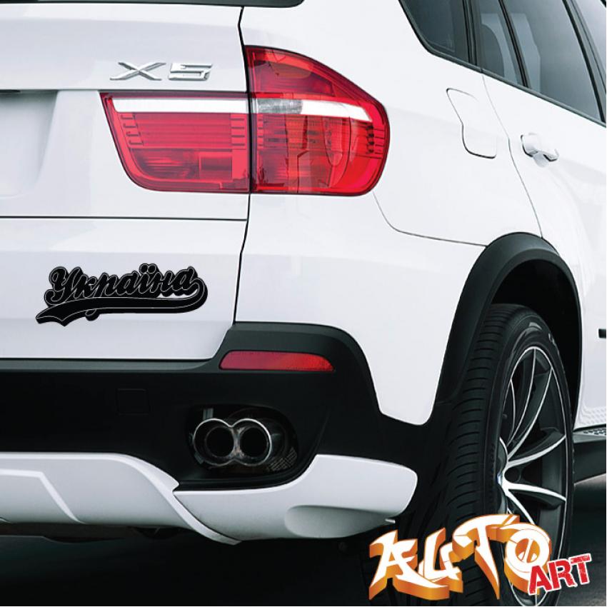 Наклейка «Україна» — патріотичний вініловий стікер для авто, мотоцикла, ноутбука або інших гаджетів.