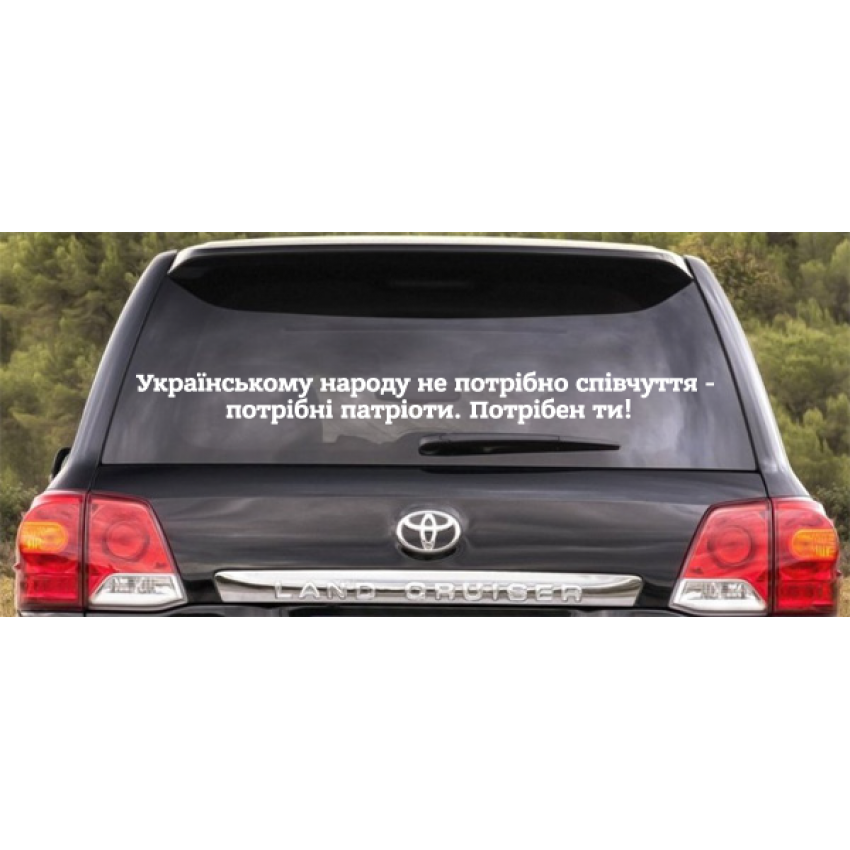 Наклейка «Українському народу не потрібно співчуття…» — патріотичний вініловий стікер для авто, мотоцикла, ноутбука або інших гаджетів.