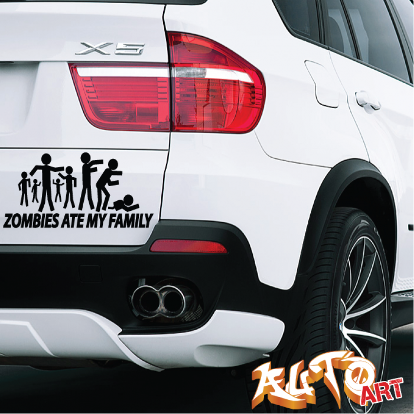Вінілова наклейка «Zombies Ate My Family» — яскравий та оригінальний аксесуар для фанатів хорору та зомбі-тематики.